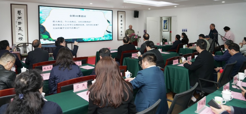 传统创作多为一景一画,48个景如何串起来,让景与景之间过渡不着痕迹、自然融合?为什么要用青花水墨呢?青色既能表现南京的灵秀,又能承载金陵历史的厚重。徐墨然在答谢词中分享了创作初心——为南京这座历史文化名城立传,让千年文脉在新时代焕发新的光彩。