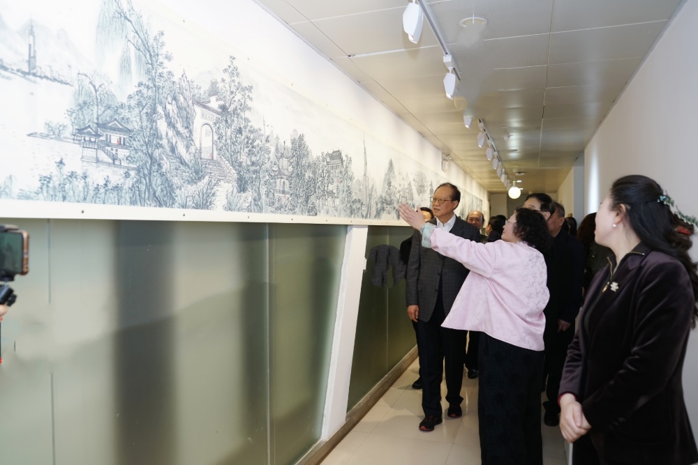 由中国山水画研究院主办,中国画艺术委员会、江苏省文史研究馆作为指导单位,江苏祥泰系统科技集团、徐墨然艺术馆承办的本次展览,是著名书画家徐墨然耗时四年创作的《新金陵48景》青花水墨长卷在南京徐墨然艺术馆的开展。