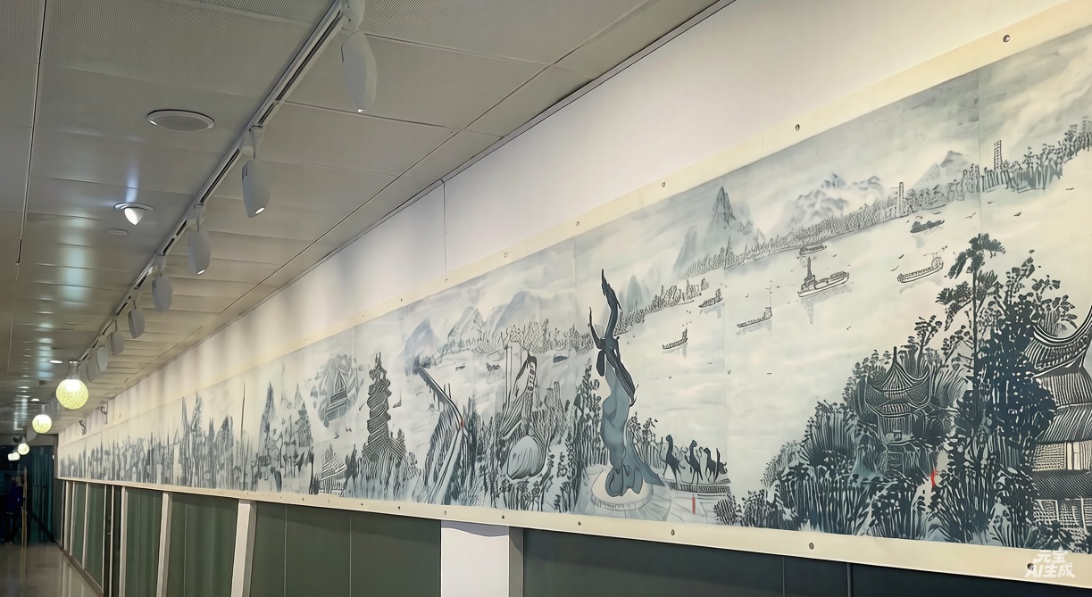 3月28日,南京徐墨然艺术馆,一幅长达36米的青花水墨长卷缓缓展开。青花色泽中,汤山猿人洞的原始气息还未散尽,六朝烟雨、大明遗存、清代人文、民国风云依次铺陈,突然,画面里出现了长江大桥的雄姿、紫峰大厦的轮廓、飞驰的地铁和耸立的通信塔……最终,长卷回归六合桂子山石柱林。